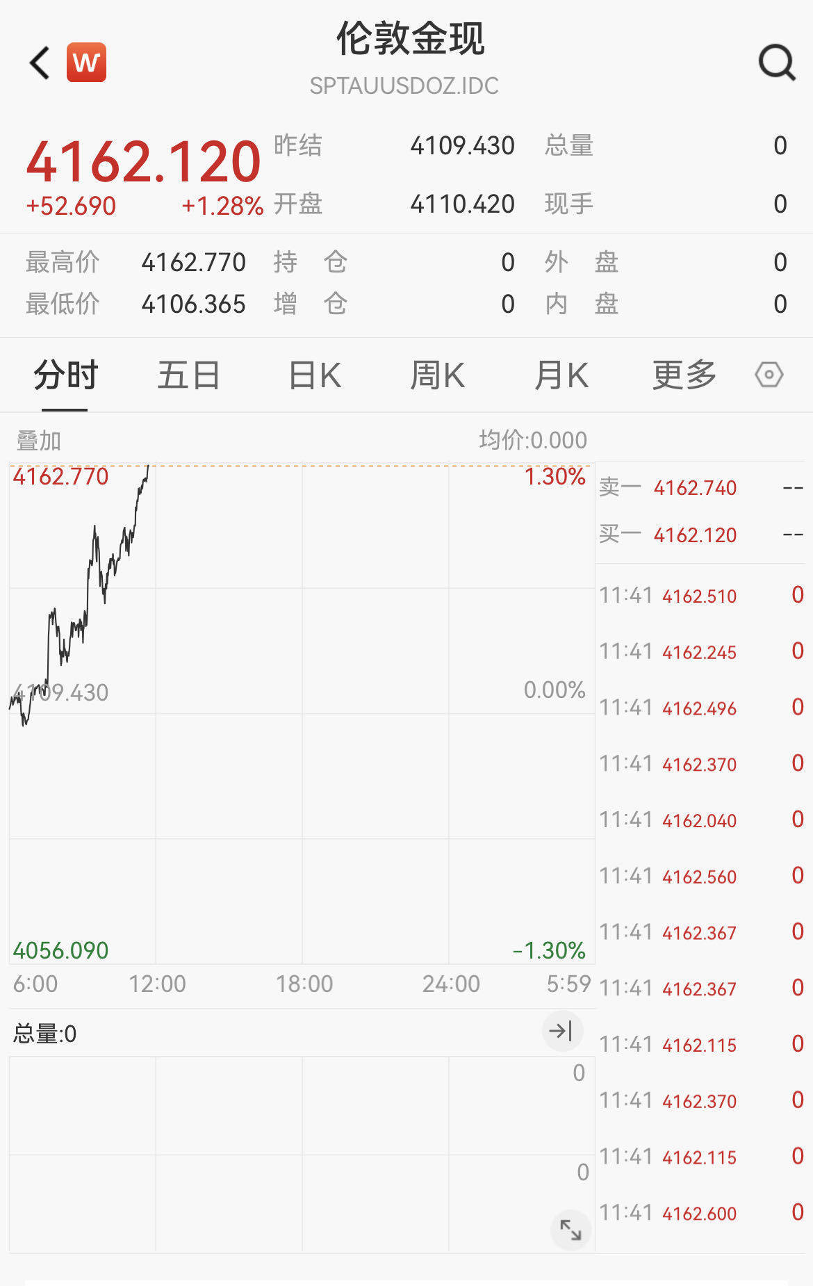 10月14日,现货黄金首次站上4160美元,再度刷新历史最高价,今年累涨超1500美元。截至11时41分,现货黄金报4162.12美元/盎司,日内涨幅达1.28%,COMEX黄金期货报4172.1美元/盎司,日内涨幅0.95%。